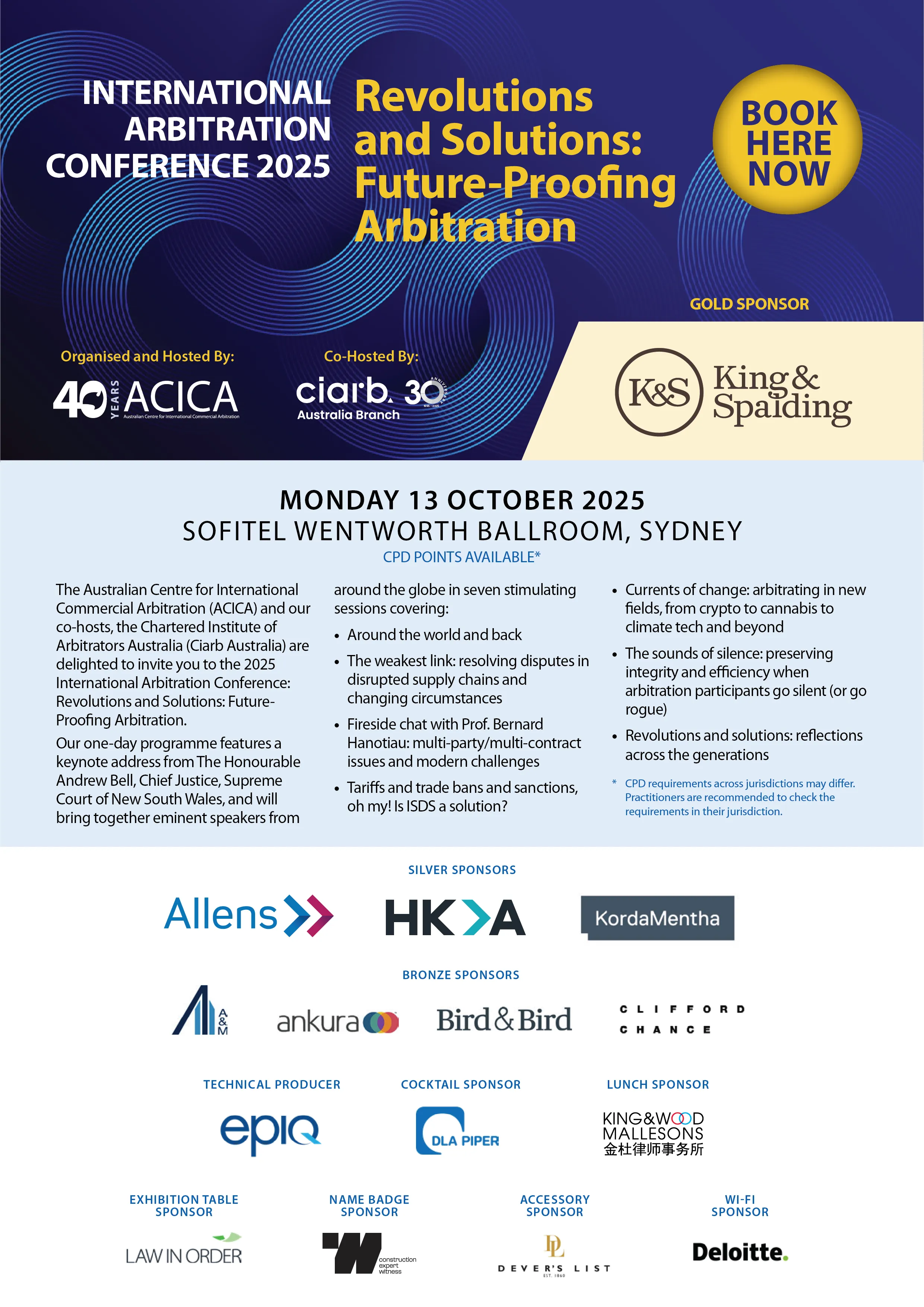 Selengkapnya →The Australian Centre for International Commercial Arbitration (ACICA) is honoured to be the official Conference host an...